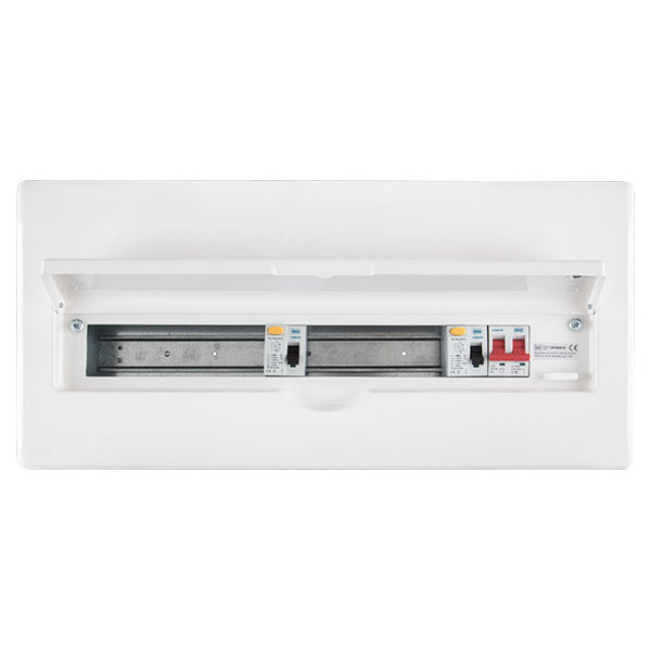 BG CFFD8616A 22 Module 16 Way Fully Recessed Unpopulated + 100A Switch, 1x80A, 1x63A Type A 30mA RCD