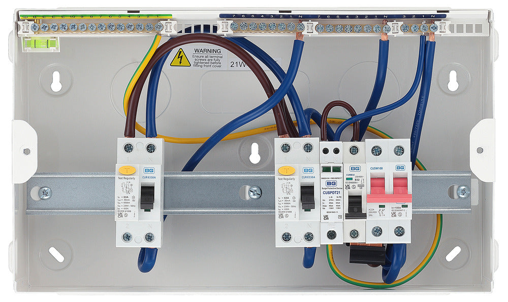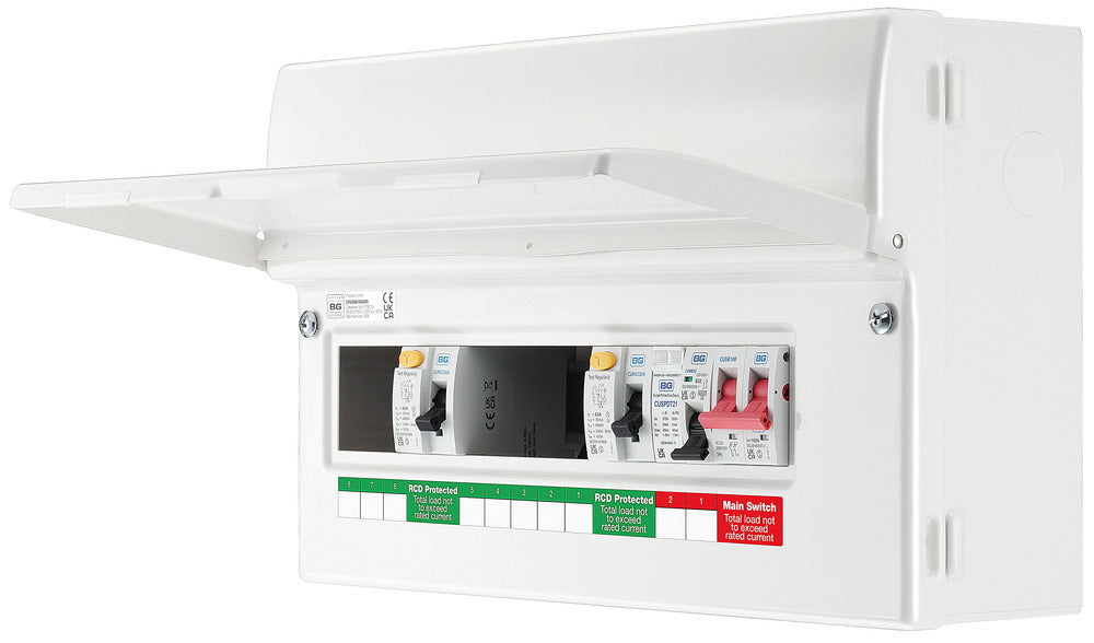 BG CFUD6608ASPD 16 Module 8 Way Unpopulated + 100A Switch, 2x63A Type A RCD, 1xSPD & 1x32A MCB