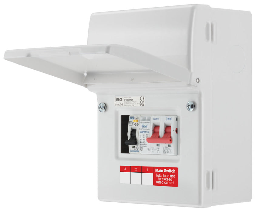 BG CFUEV5RDA 5 Module IP20 Metal Metal EV Charger Circuit Protection with 40A Type A DP RCBO, 100A Main Switch & Type 2 SPD