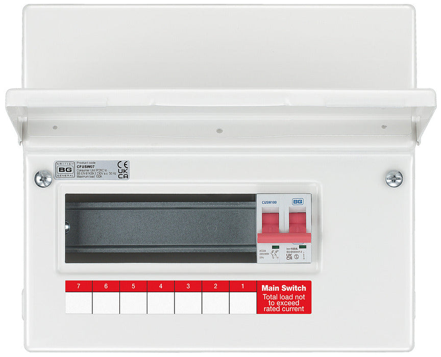 BG CFUSW07 9 Module 7 Way Metal Unpopulated + 100A Switch