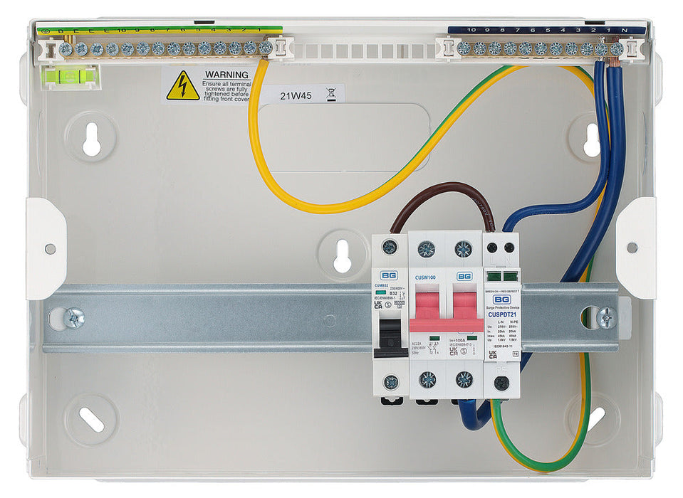 BG 12 Module 8 Way Unpopulated + 100A Main Switch, SPD & 32A MCB