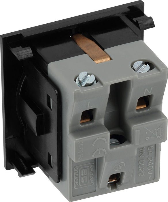 BG Euro Module 16A Schuko Unswitched Socket - Black