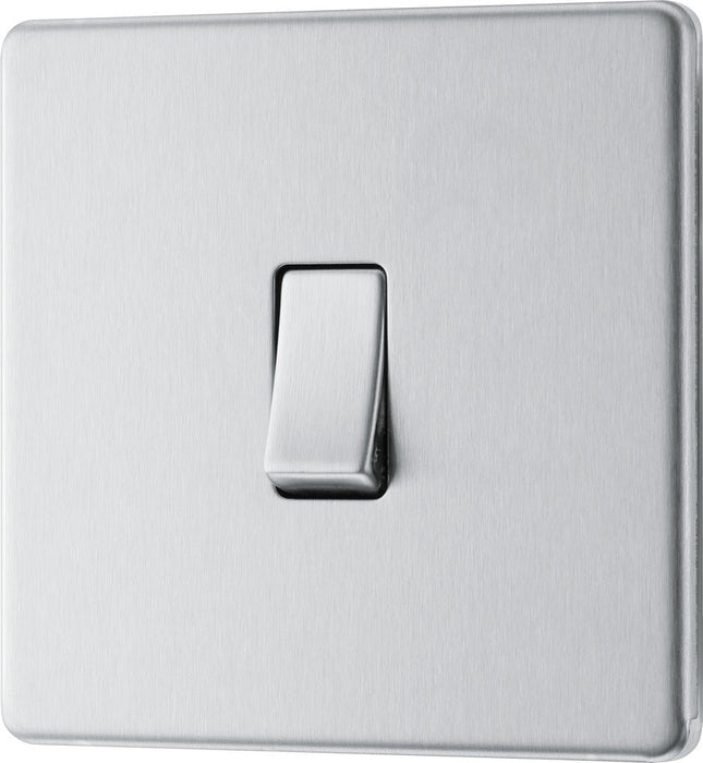 BG FBS12 Flatplate Screwless 20A 16AX 2 Way Single Light Switch - Brushed Steel