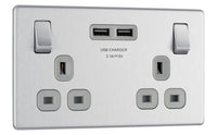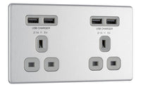 BG FBS21G Flatplate Screwless Single Socket 13A - Grey Insert - Brushed Steel (5 Pack)