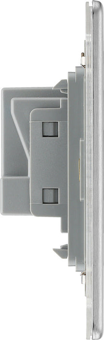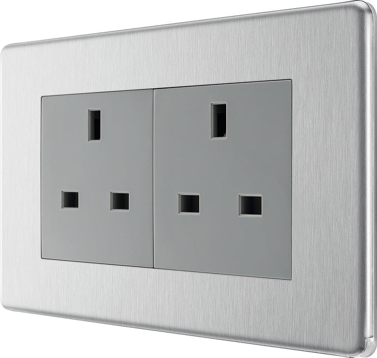 BG FBS24G Flatplate Screwless 2G 13A Unswitched Socket - Grey Insert - Brushed Steel