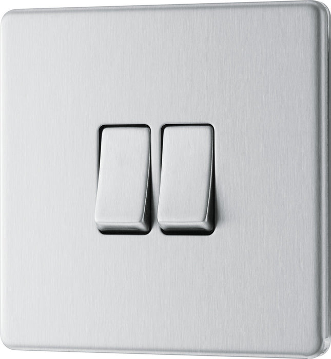 BG FBS42 Flatplate Screwless 20A 16AX 2 Way Double Light Switch - Brushed Steel