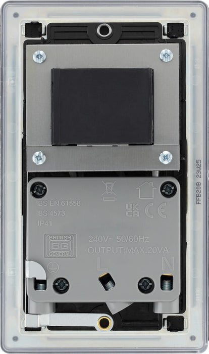 BG FFB20B Flatplate Screwless Dual Voltage Shaver Socket - Black Insert - Matt Black