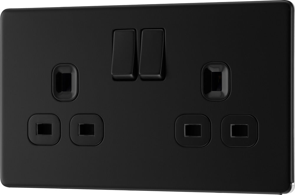 BG FFB22B Flatplate Screwless Double Socket 13A - Black Insert - Matt Black