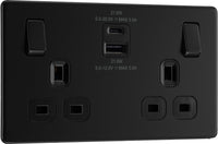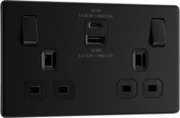 BG FFB29B Flatplate Screwless Single Round Pin Unswitched 5A Socket - Black Insert - Matt Black