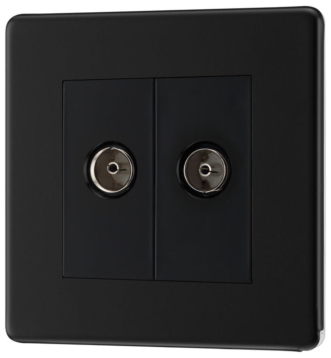 BG FFB61 Flatplate Screwless Double TV Aerial Socket - Black Insert - Matt Black