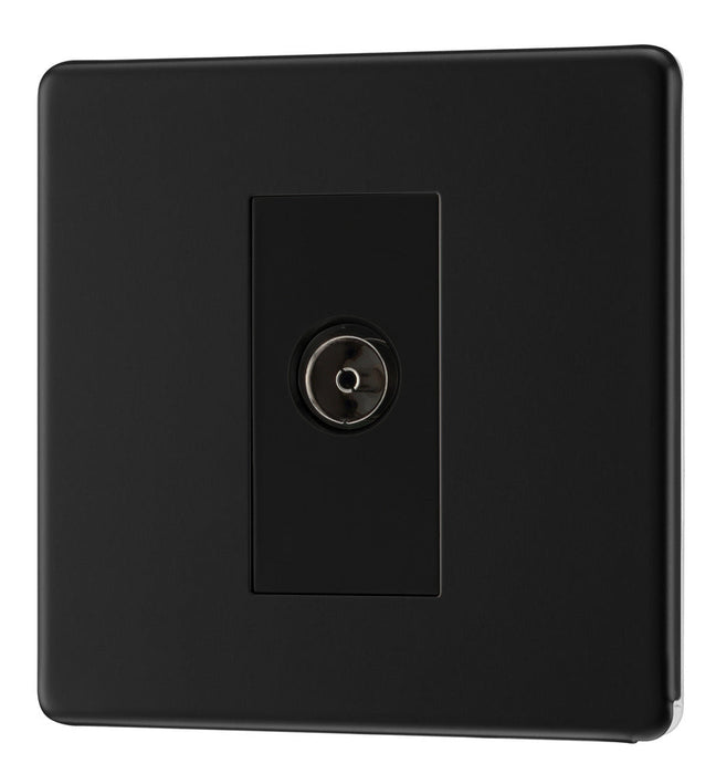 BG FFB62 Flatplate Screwless Isolated TV Aerial Socket - Black Insert - Matt Black
