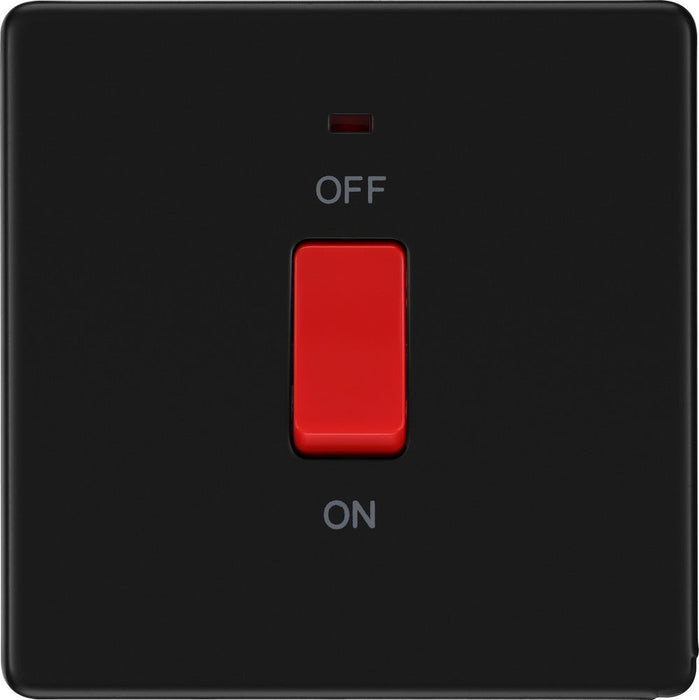 BG FFB74 Flatplate Screwless 45A DP Single Plate + Neon - Matt Black