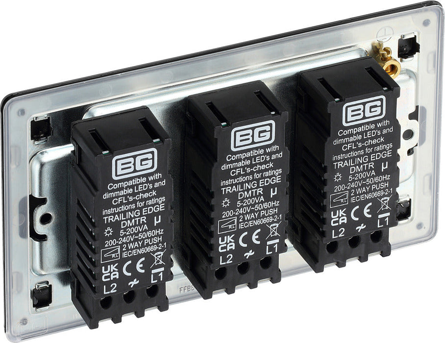 BG FFB83 Flatplate Screwless 2-Way Triple Intelligent Trailing Edge LED Dimmer Push On/Off - Matt Black