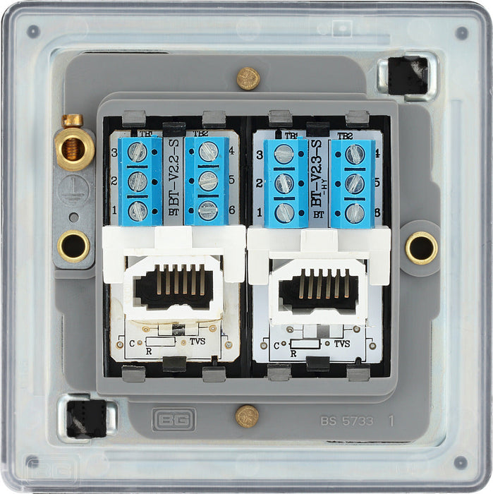 BG FFBBTS2 Flatplate Screwless Double Slave Telephone Socket - Matt Black