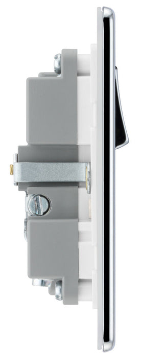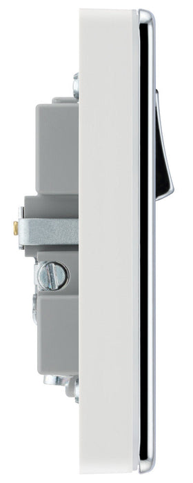 BG FPC21UAC18W Flatplate Screwless 13A Single Switched Power Socket + USB A+C (18W) - Polished Chrome + White Insert