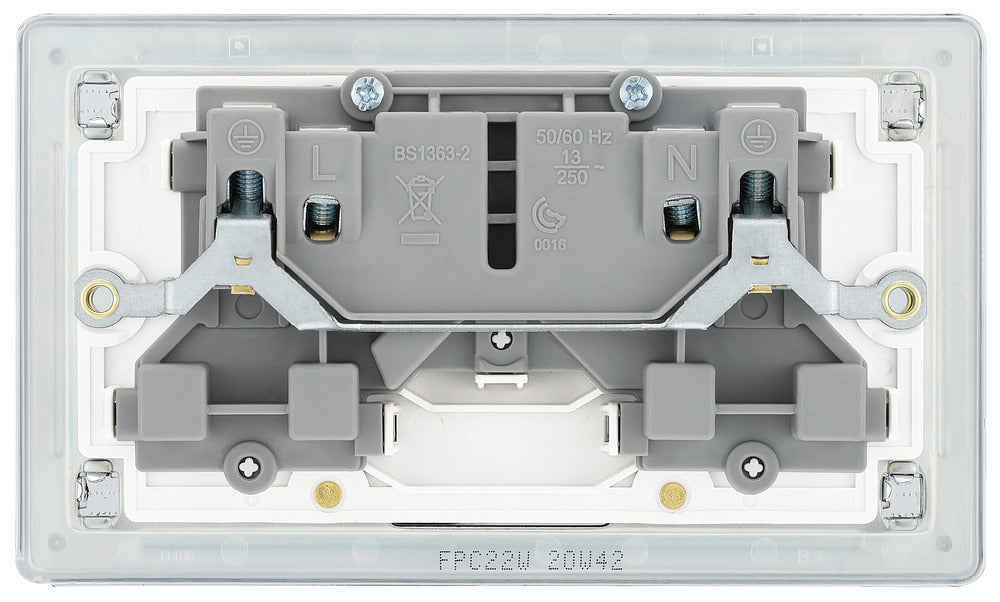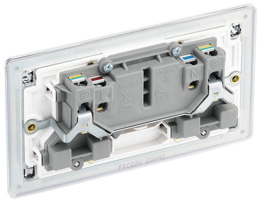BG FPC22W Flatplate Screwless Double Socket 13A - White Insert - Polished Chrome