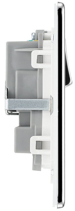 BG Flatplate Screwless Double Socket 13A - White Insert - Polished Chrome
