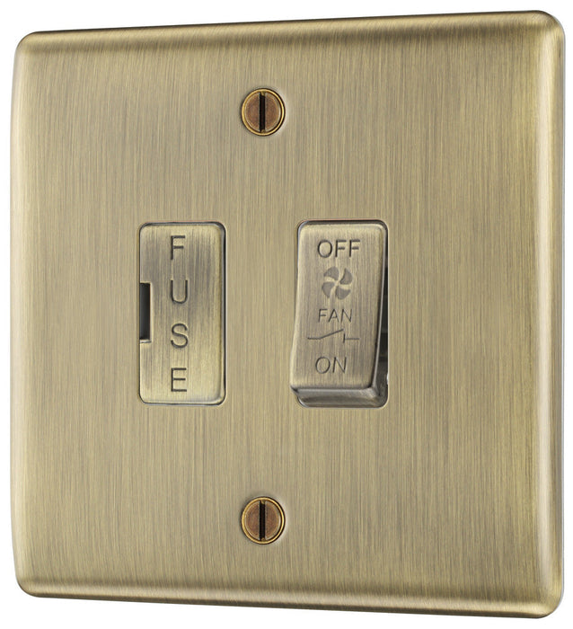BG NAB15F Flatplate Screwless Triple Pole Fused Fan Isolator Switch 10A - Antique Brass