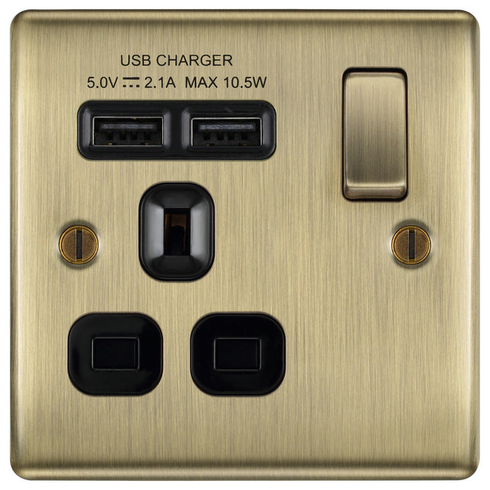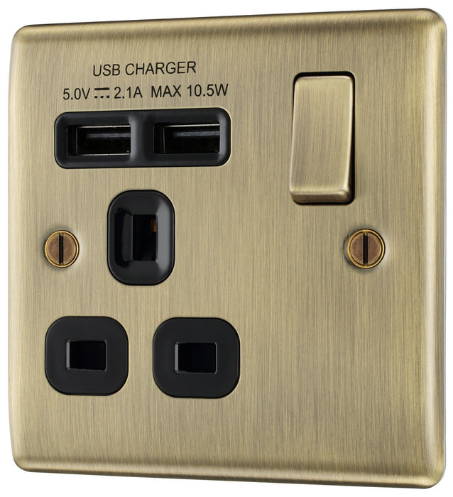 BG NAB21U2B Nexus Metal Single Socket + 2x USB /Black Insert - Antique Brass