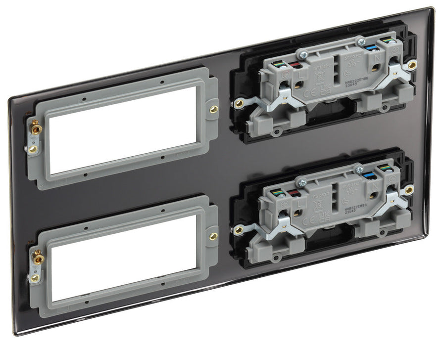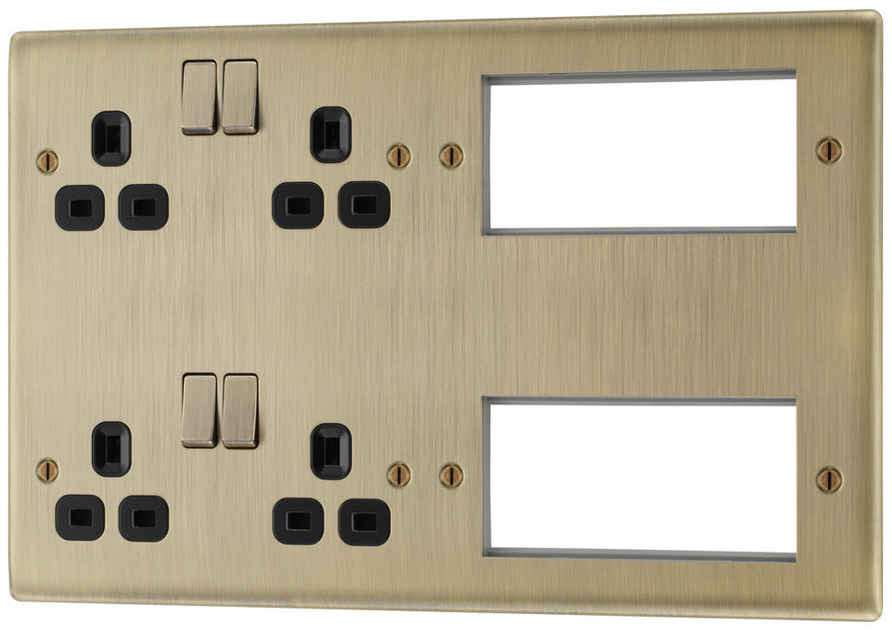 BG NAB222EM8B Nexus Metal 2x 2G Socket 13A + 2x 4 Module Aperture - Black Insert - Antique Brass
