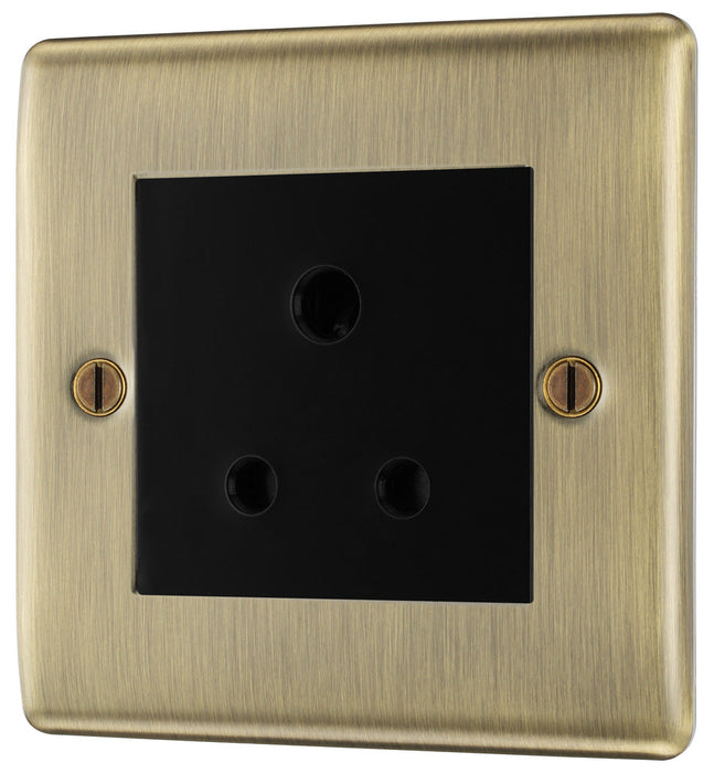 BG NAB29B Nexus Metal Unswitched Round Pin Socket 5A - Black Insert - Antique Brass