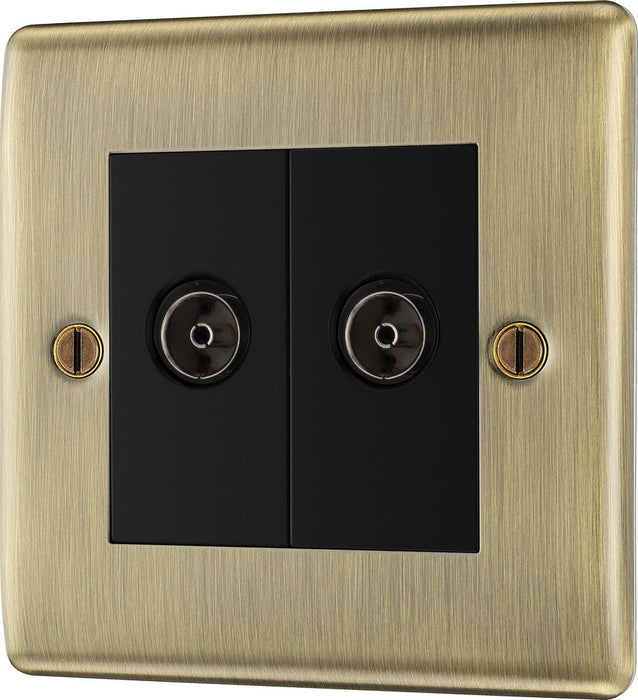 BG NAB63 Nexus Metal Isolated Double TV Aerial Socket - Black Insert - Antique Brass