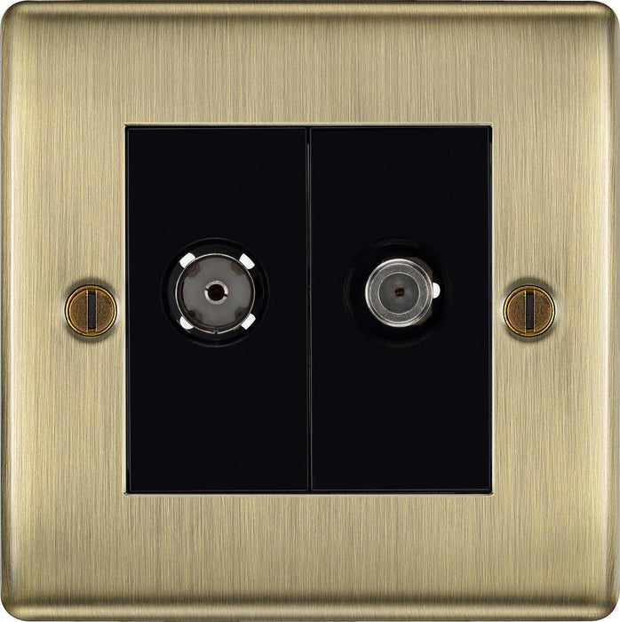 BG NAB65 Nexus Metal 2 Gang Satellite & Co-axial Socket - Black Insert - Antique Brass