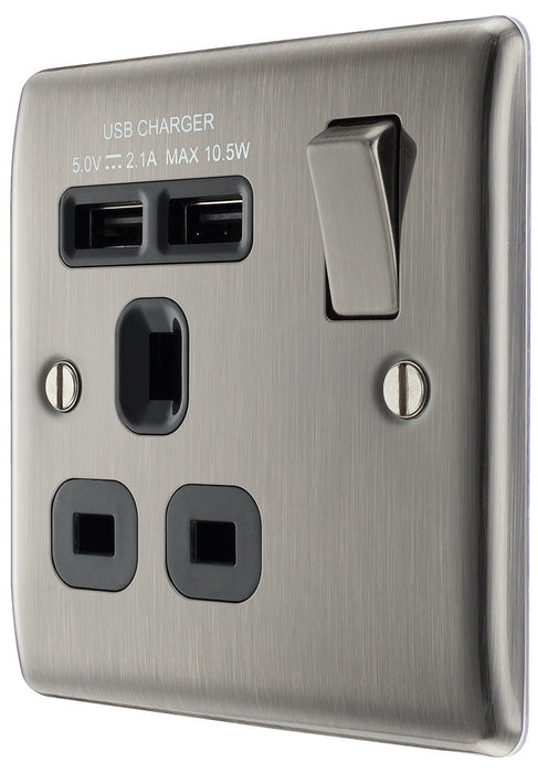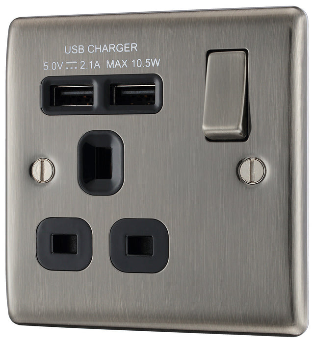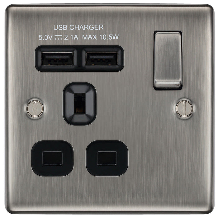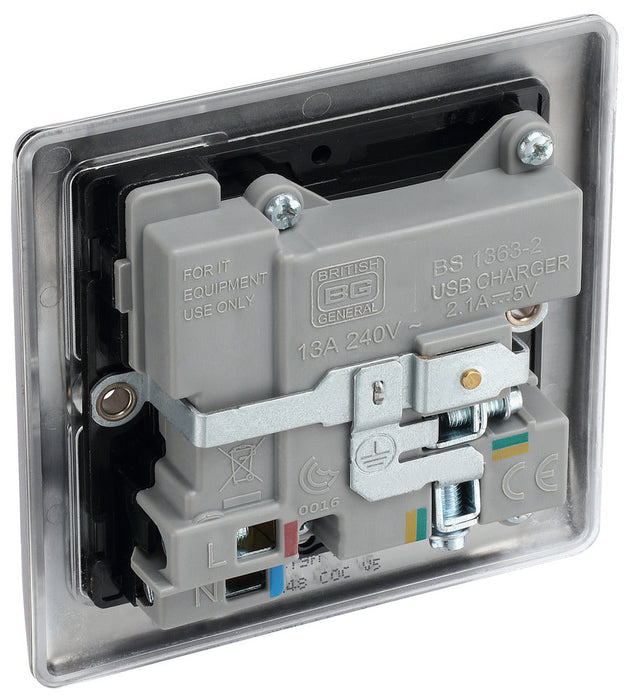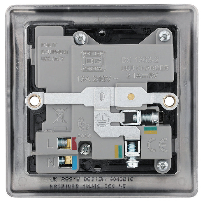 BG NBI21UB Nexus Metal Single Socket + 2x USB /Black Insert - Brushed Iridium