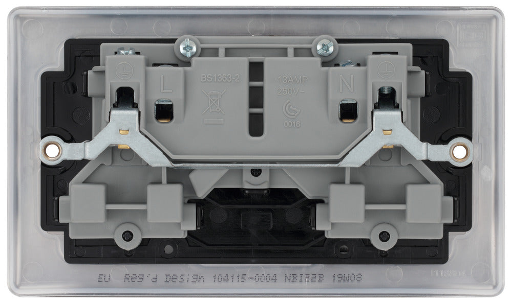 BG NBI22B Nexus Metal Double Socket 13A - Black Insert - Brushed Iridium