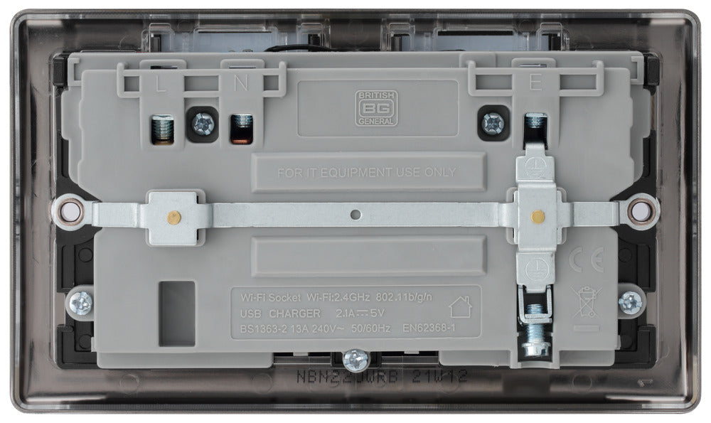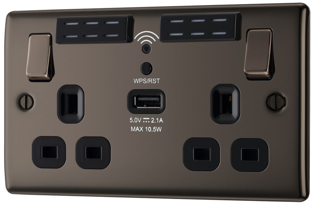 BG NBN22UWRB Nexus Metal Double Socket 13A + Wifi Extender +1x USB(2.1A) - Black Insert - Black Nickel