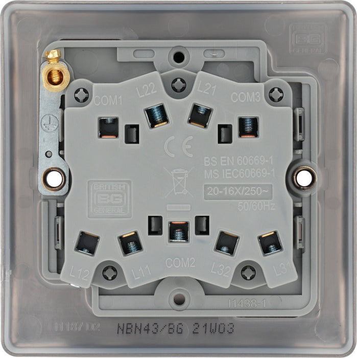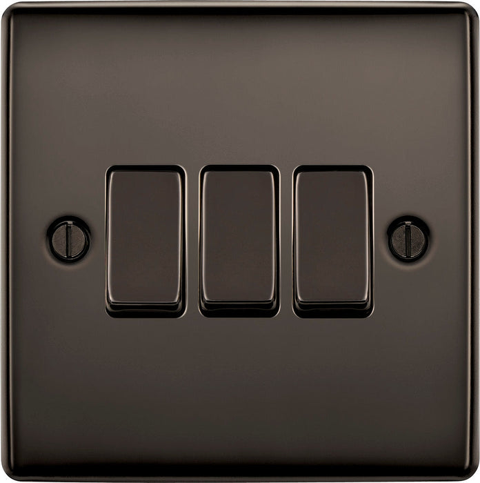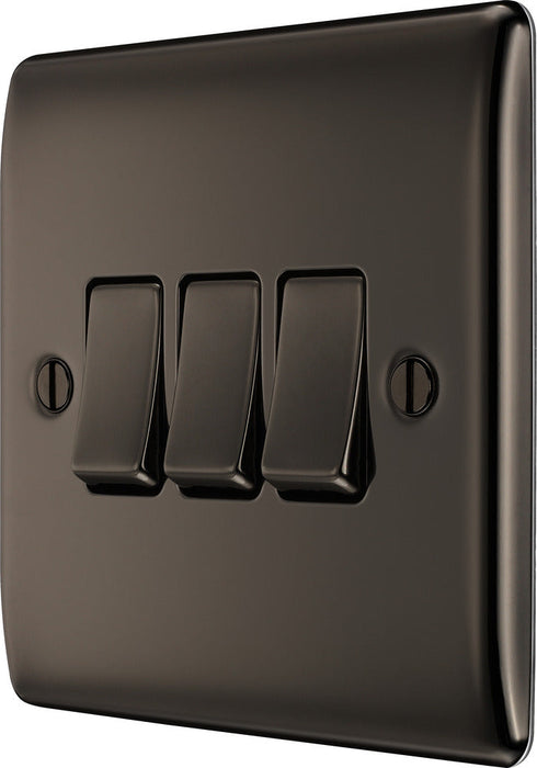 BG NBN43 Nexus Metal 20A 16AX 2 Way Triple Light Switch - Black Nickel