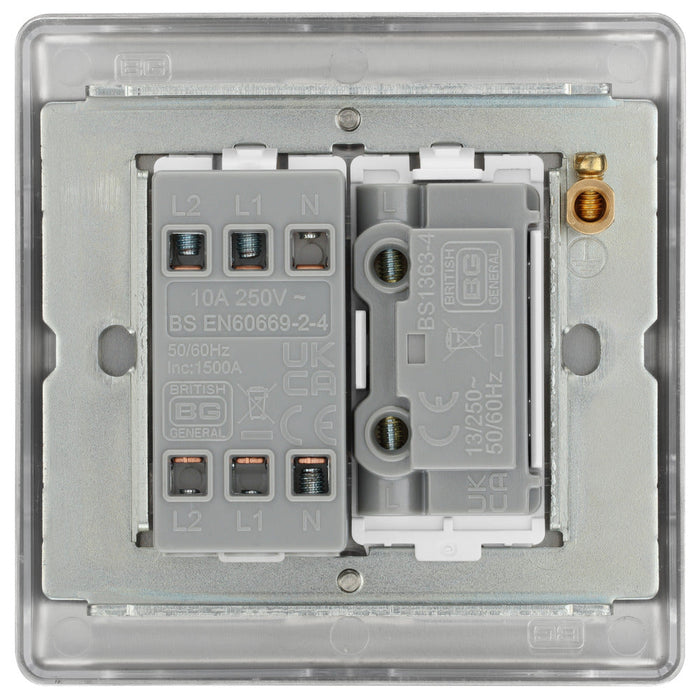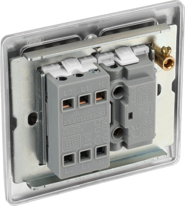 BG NBS15F Nexus Metal Triple Pole Fused Fan Isolator Switch 10A - Brushed Steel