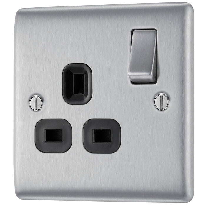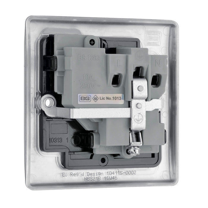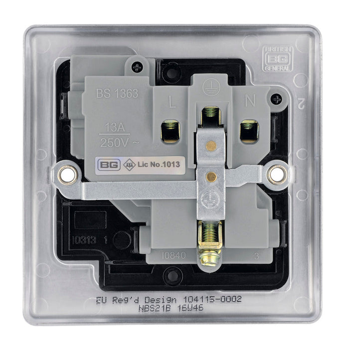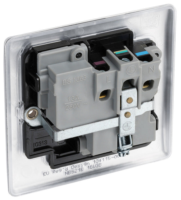 BG NBS21Bx10 Nexus Metal Single Socket 13A /Black Insert - Brushed Steel (10 Pack)