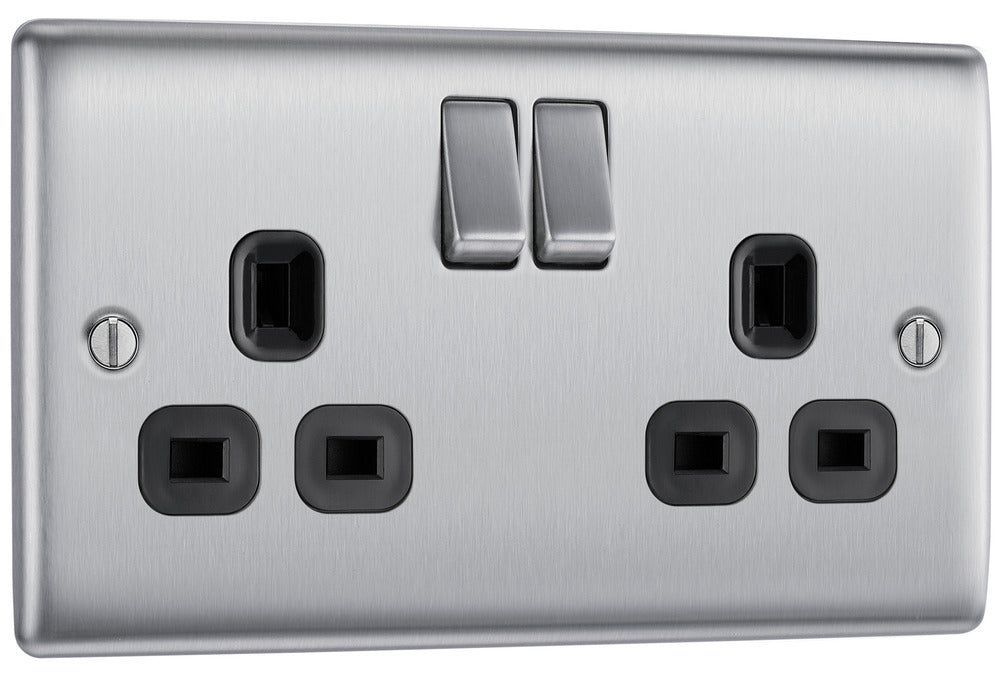 BG NBS22B Nexus Metal Double Socket 13A /Black Insert - Brushed Steel (5 Pack)