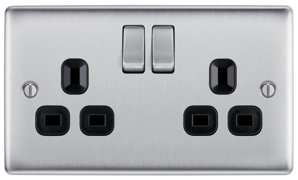 BG NBS22Bx5 Nexus Metal Double Socket 13A /Black Insert - Brushed Steel (5 Pack)