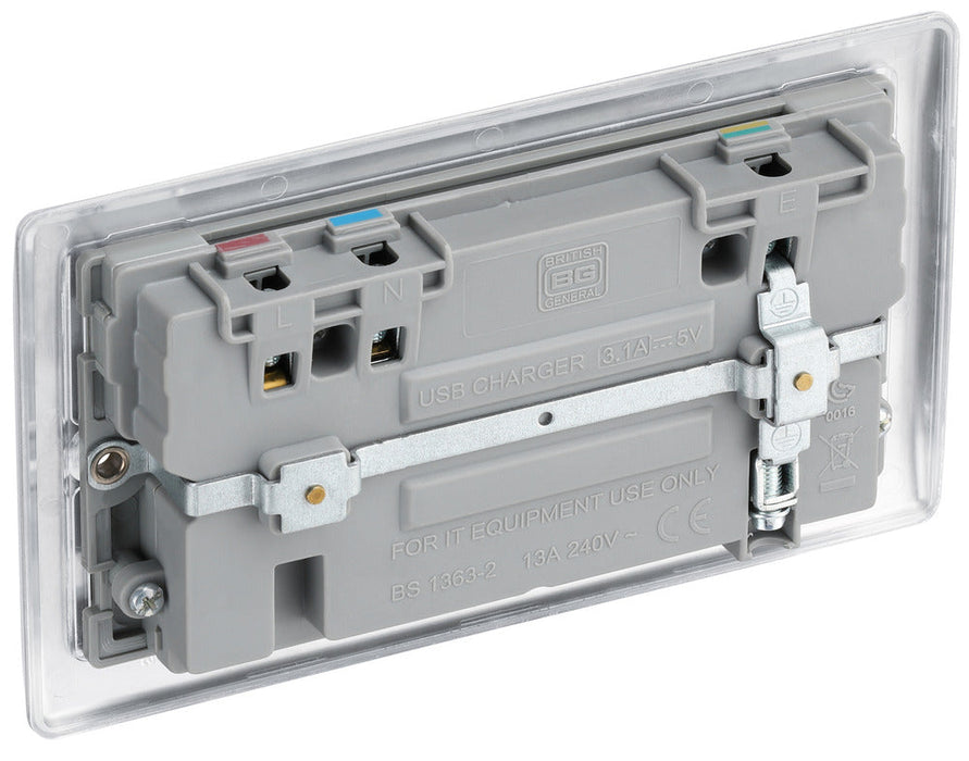 BG NBS22U3G Nexus Metal Double Socket + 2x USB(3.1A) - Grey Insert - Brushed Steel (10 Pack)