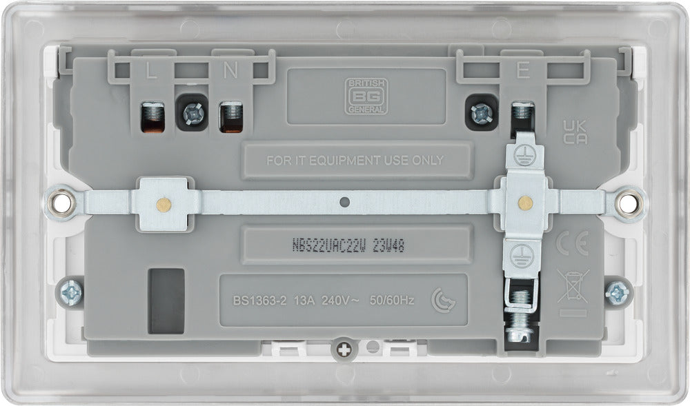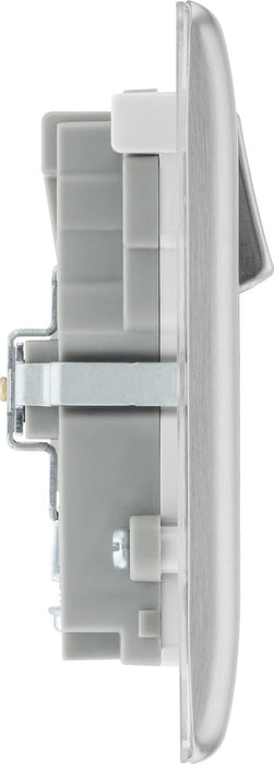 BG NBS22UAC22W Nexus Metal 13A Double Switched Power Socket + USB A+C (22W) - Brushed Steel + White Insert