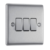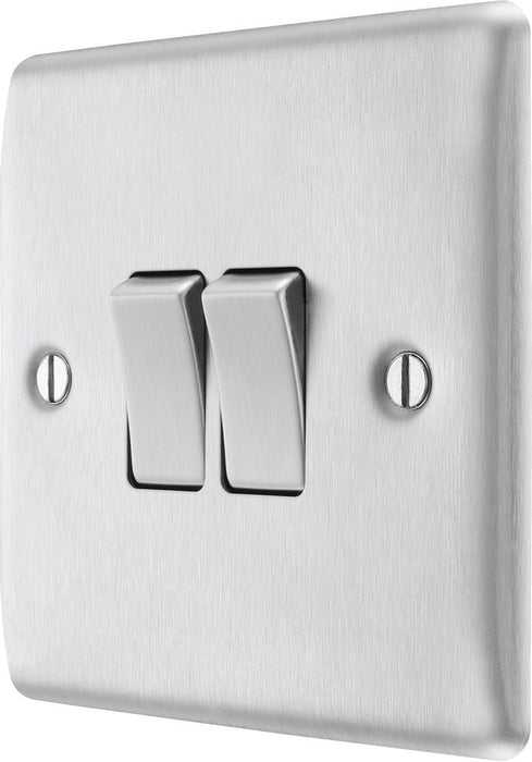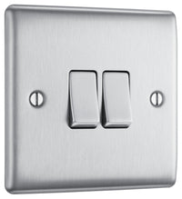 BG NBS42 Nexus Metal 20A 16AX 2 Way Double Light Switch - Brushed Steel