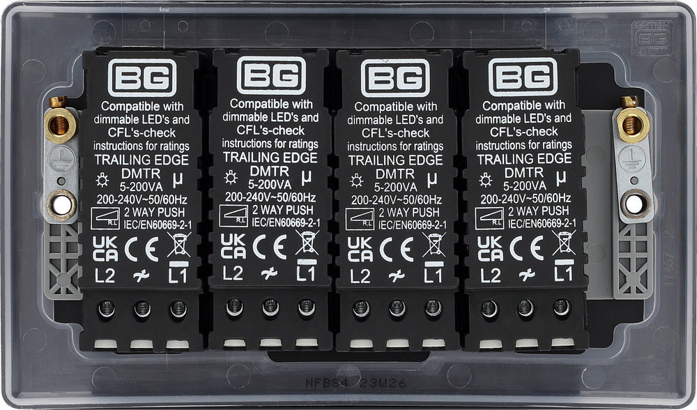 BG NFB84 Nexus Metal 2-Way Quad Trailing Edge Dimmer Push On/Off - Matt Black + Black Knobs