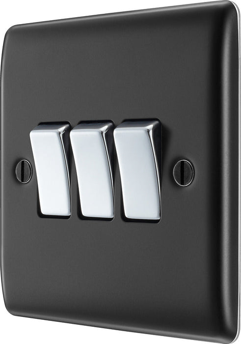BG NMB43 Nexus Metal Triple Light Switch 10A - Matt Black