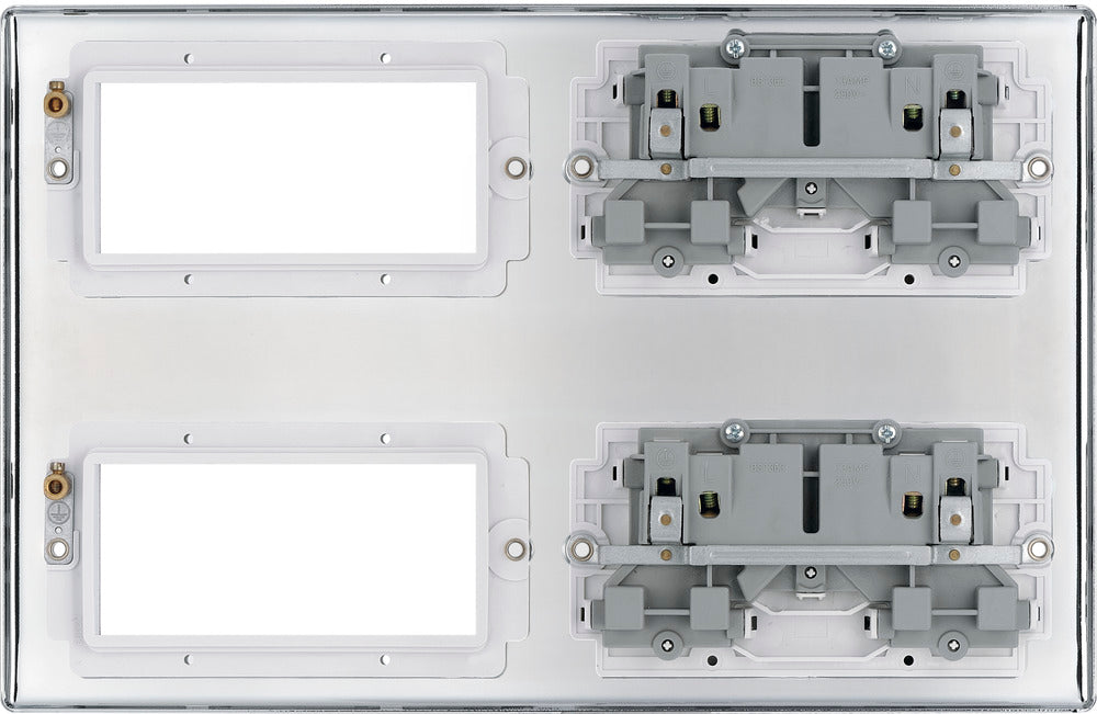 BG Nexus Metal 2x 2G Socket 13A + 2x 4 Module Aperture - White Insert - Polished Chrome