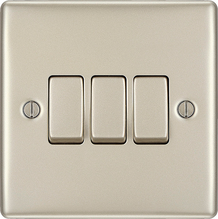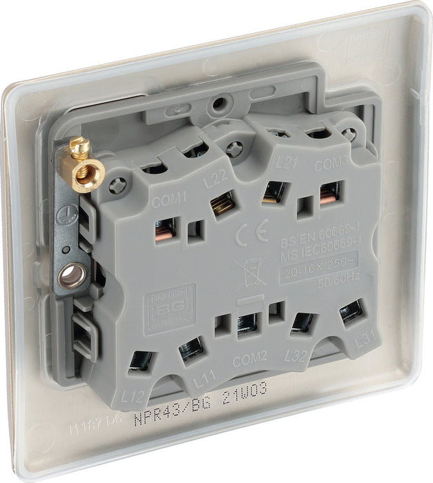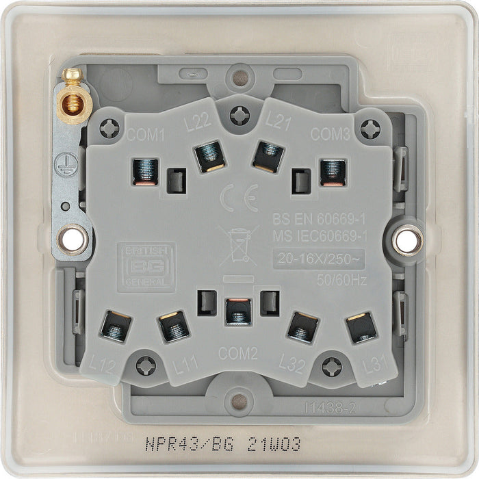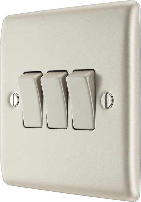 BG NPR43 Nexus Metal 20A 16AX 2 Way Triple Light Switch - Pearl Nickel