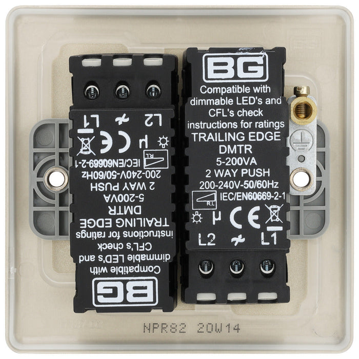 BG NPR82 Nexus Metal 2-Way Double Trailing Edge Dimmer Push On/Off - Pearl Nickel