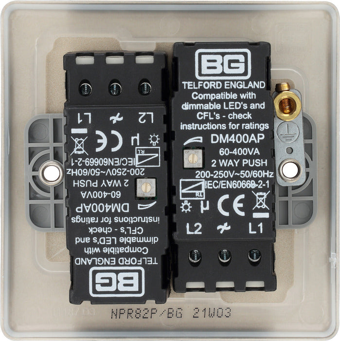 BG NPR82P Nexus Metal 2-Way Double Leading Edge Dimmer Push On/Off - Pearl Nickel