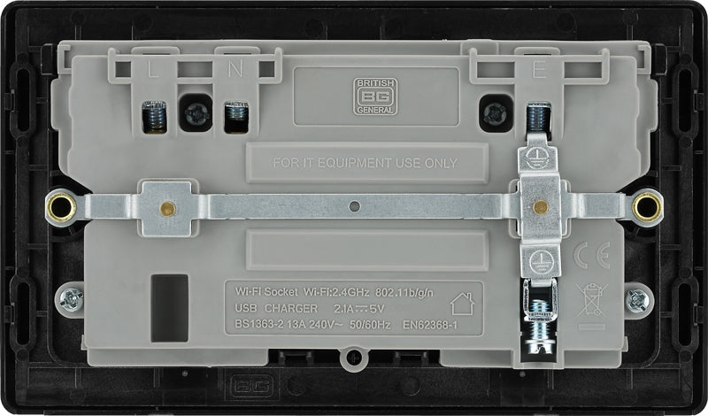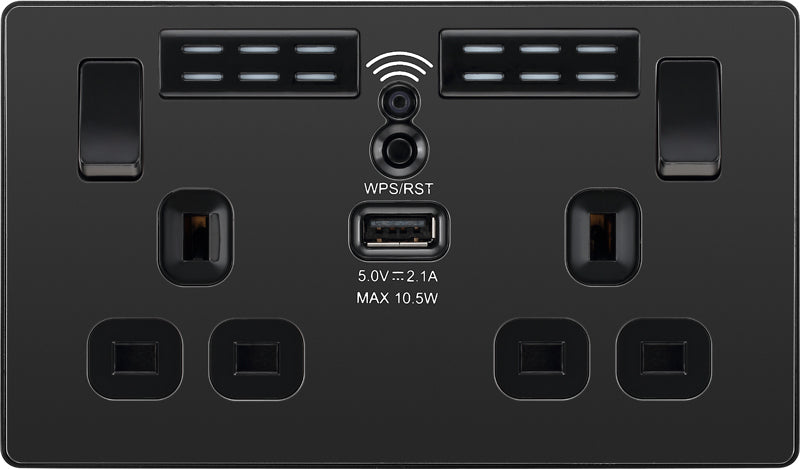 BG Evolve PCDBC22UWRB 13A Double Switched Power Socket + WiFi Extender + 1xUSB(2.1A) - Black Chrome (Black)