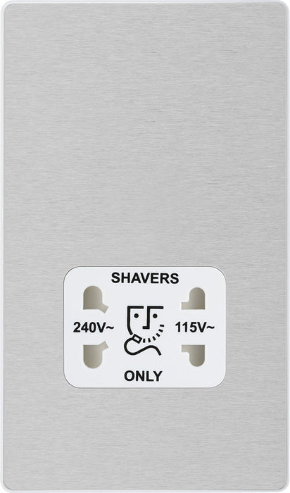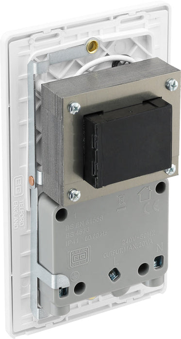 BG Evolve PCDBS20W 115/240V Dual Voltage Shaver Socket - Brushed Steel (White)