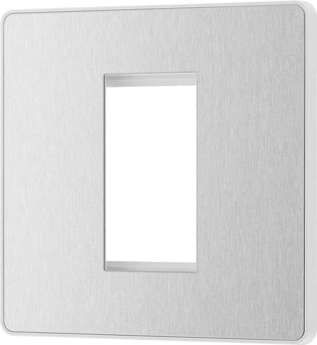 BG Evolve PCDBSEMS1W Single Euro Module Front Plate (25 x 50) - Brushed Steel (White)