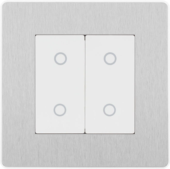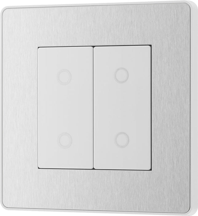 BG Evolve PCDBSTDM2W 2-Way Master 200W Double Touch Dimmer Switch - Brushed Steel (White)
