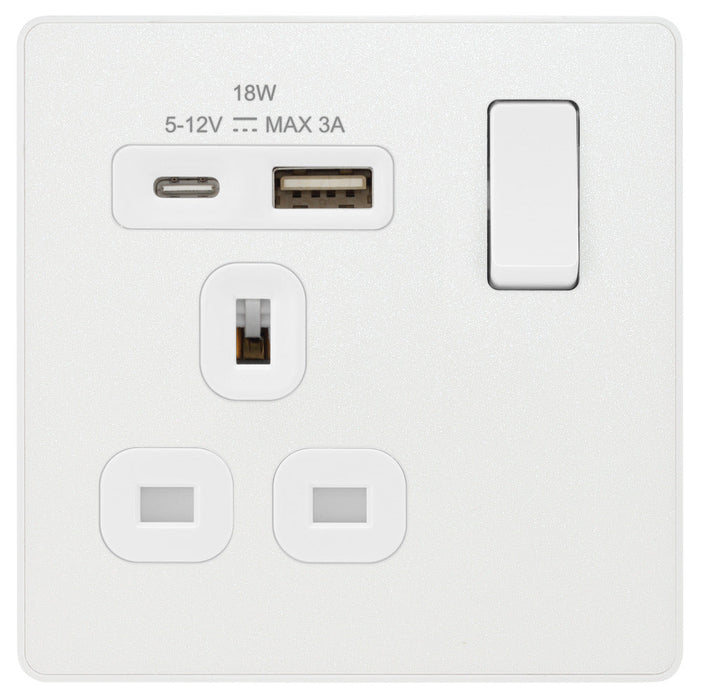 BG Evolve PCDCL21UAC18W 13A Single Switched Power Socket + USB A+C (18W) - Pearlescent White (White)