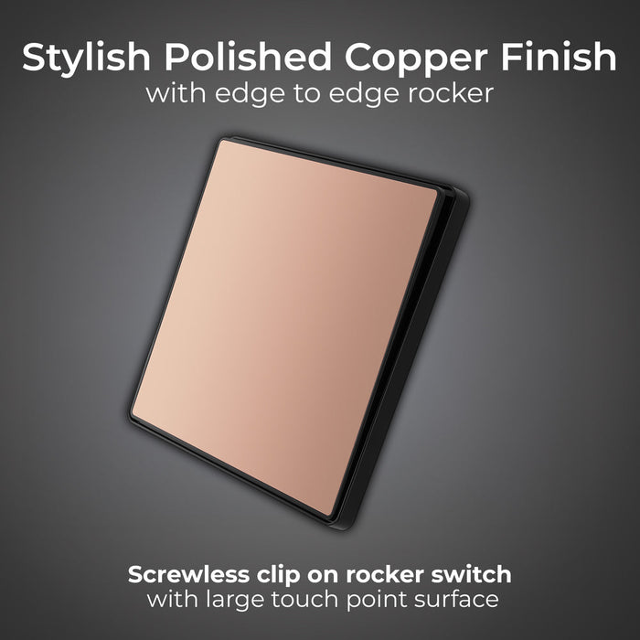 BG Evolve PCDCP13EB 20A 16AX 2 Way Single Intermediate Light Switch, Edge to Edge Rocker - Polished Copper (Black)
